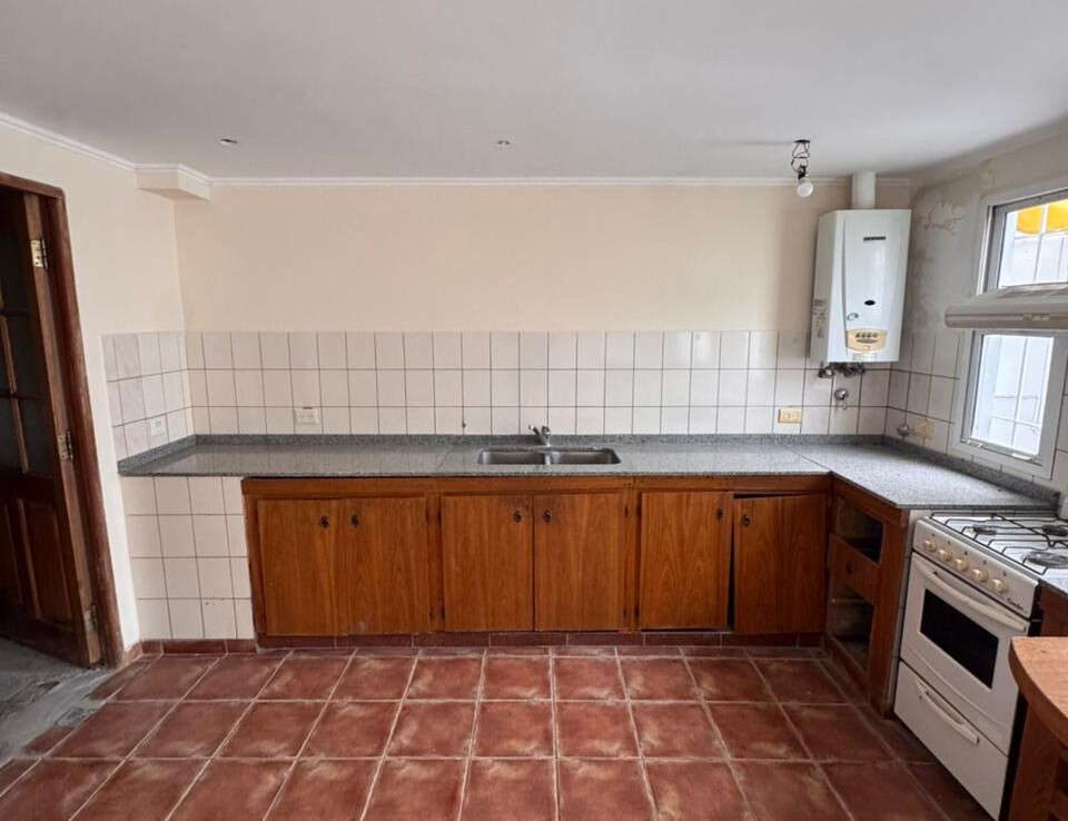 Hermosa propiedad con jardin al frente y entrada de garage para dos vehiculos pequeños. Compuesta en planta baja por un amplio y luminoso living-comedor, cocina integrada con pequeña barra desayunadora, dos dormitorios; uno con placard y principal con vestidor, baño completo y patio verde de aprox. 60 m2. En planta alta nos encontramos con un luminoso ambiente de escritorio o espacio de trabajo con terraza ( posibilidad de seguir ampliando), ante baño, baño y dormitorio con vista al patio. Calefaccion por radiadores y aireacondicionado en living-comedor. NO APTA CREDITO.