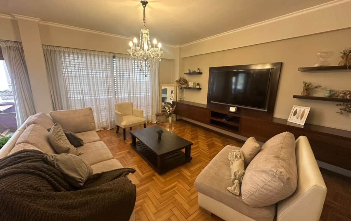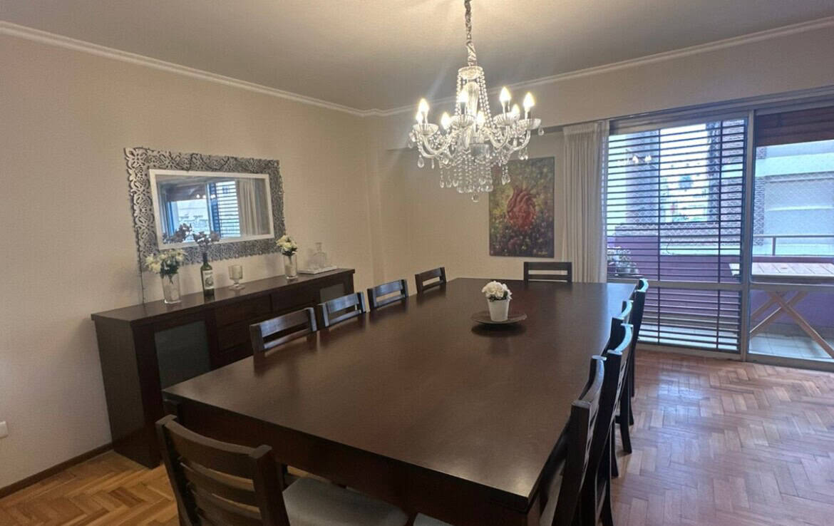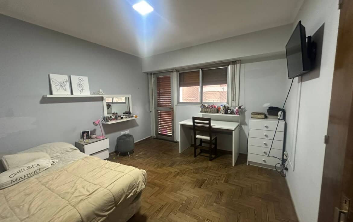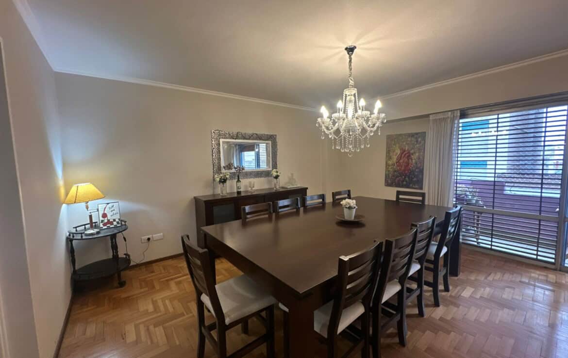 Piso de 227m2, amplio living comedor, cocina separada, lavadero, tres dormitorios amplios con placares, tres baños, patio con pisos cerámicos, doble cochera cubierta en primer nivel. Aire acondicionado. Balcón corrido.