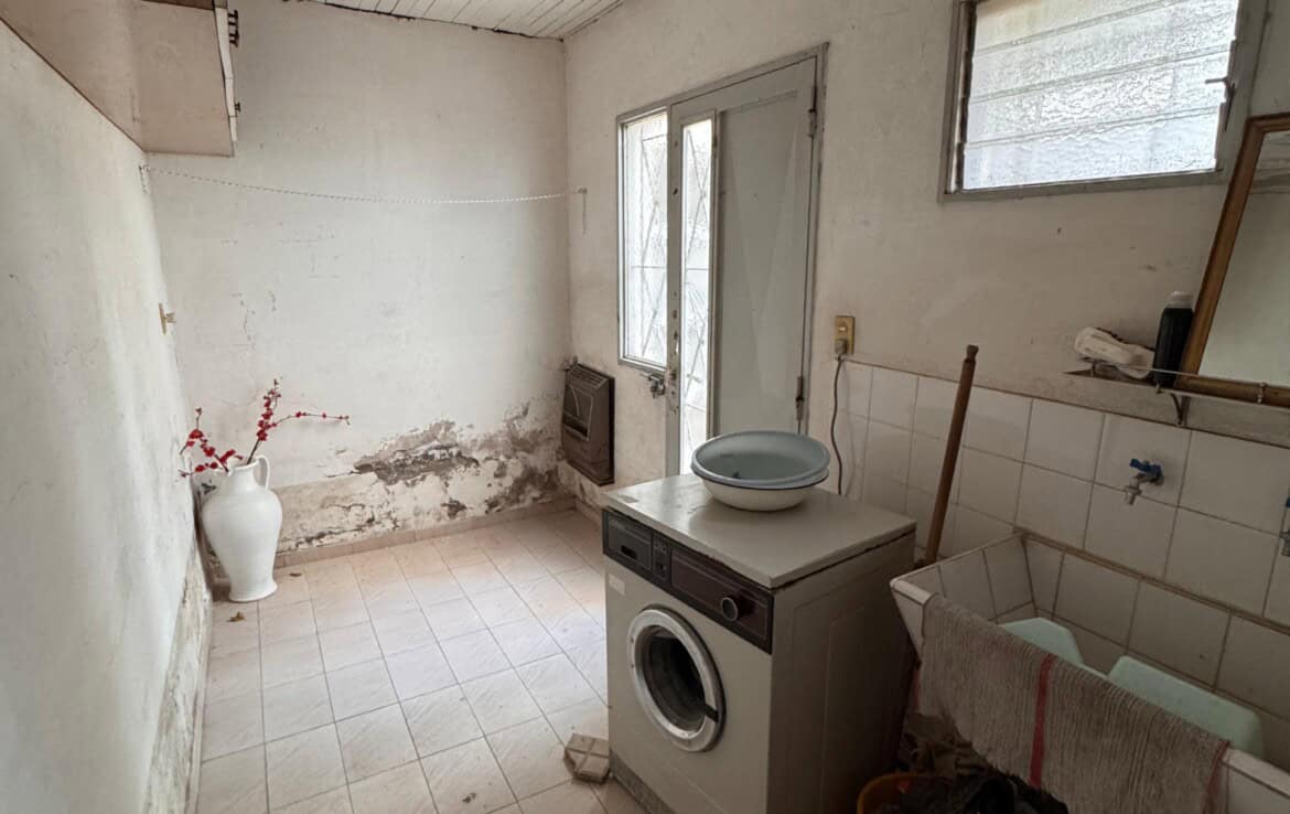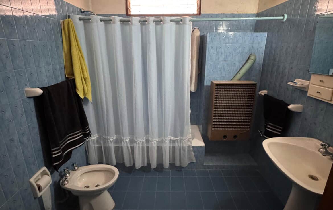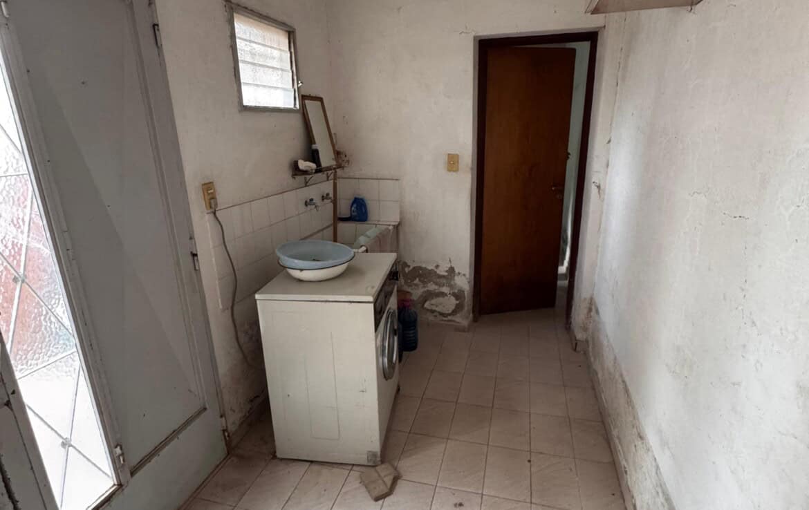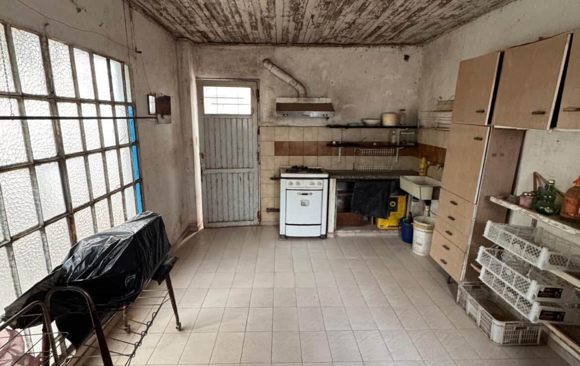 Casa con living amplio, cocina comedor, baño, dos dormitorios con placares, otra dependencia o dormitorio con baño lavadero, quincho con cocina y fogon, patio trasero, gge y patio pasante. –